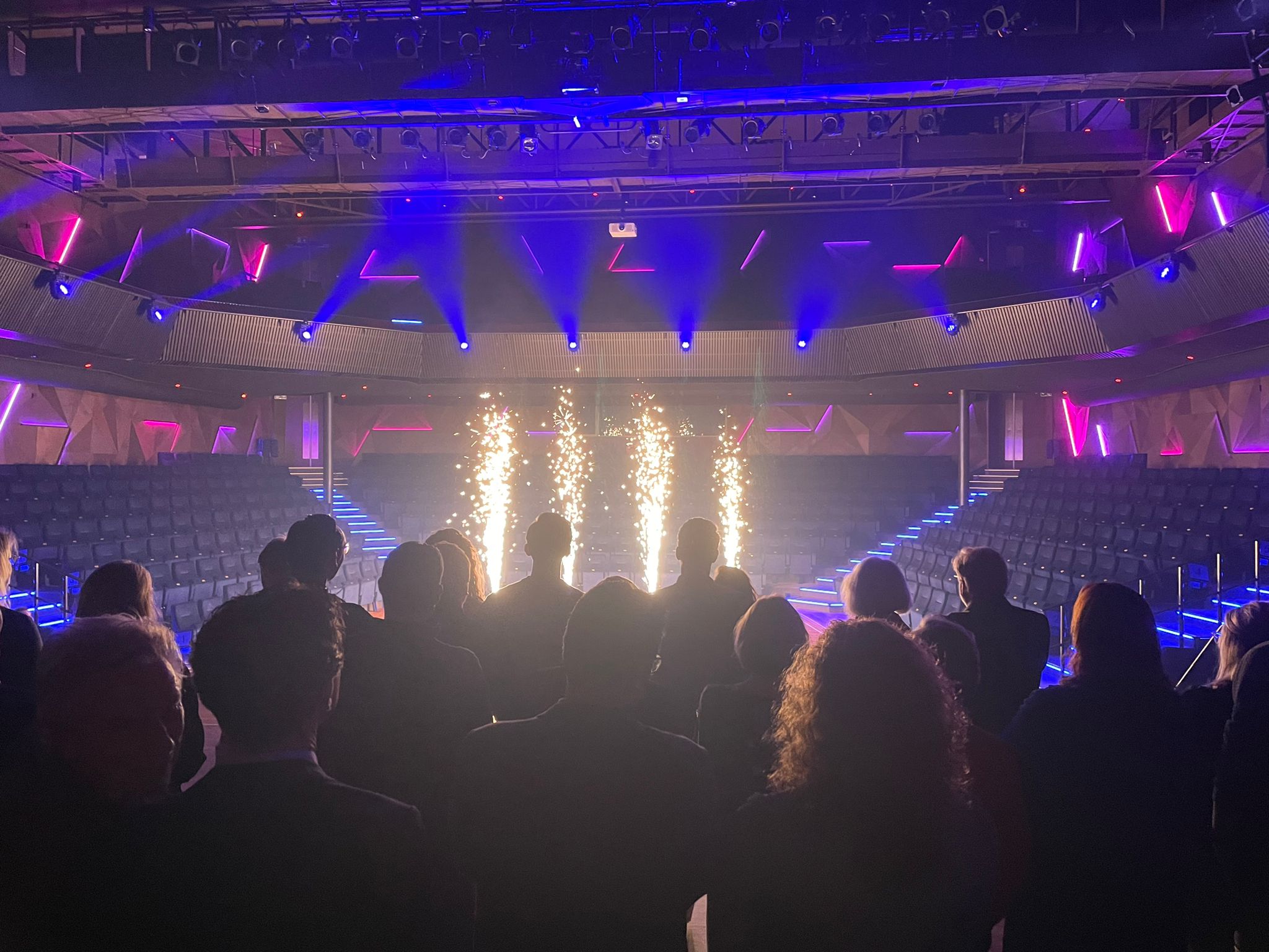 Toen in maart van dit jaar de interne renovatie van de grote zaal van theater- en congrescentrum Spant! in Bussum actueel werd, dacht William Bosschaart hardop ‘dat wordt toch nog wel een dingetje’: “De opdrachtgever wilde een zo kort mogelijke onderbreking van de voorstellingen. Begin juli werd begonnen en op 8 september moest alles klaar zijn, want toen stond het eerste evenement alweer op het programma.” Als projectleider binnen Kakes-Deurwaarder trad William eerst in contact met de interieurarchitecten van Kabaz. Zij tekenden voor het ontwerp dat bestaat uit natuurlijke en duurzame materialen, opvallende vormen en spectaculaire licht- en geluidinstallaties. Tegelijkertijd werd de BIM-projectgroep van HSB in stelling gebracht: “Het was aan BIM-modelleur Niels Addicks om een 3D model te maken van Spant! Om de bestaande situatie op de millimeter nauwkeurig in kaart te brengen, is er een scan ofwel een Pointcloud gemaakt. Vervolgens is het nieuwe ontwerp van Kabaz in het bestaande model getekend om te kijken of alles paste.”