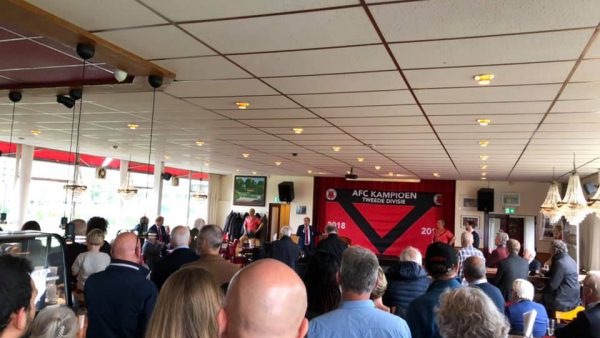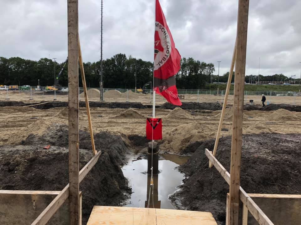 Op 4 oktober was het groot feest bij AFC. In aanwezigheid van zo’n 100 leden van AFC vond de officiĆ«le handeling plaats voor de start bouw, in de vorm van het dopen van een eerste heipaal met een fles champagne.
