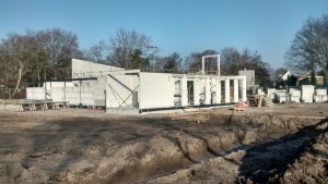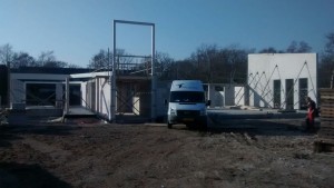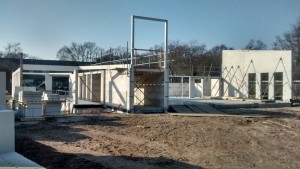 Het kalkzandsteen op de begane grond is gereed. Komende weken de verdieping en de kap.