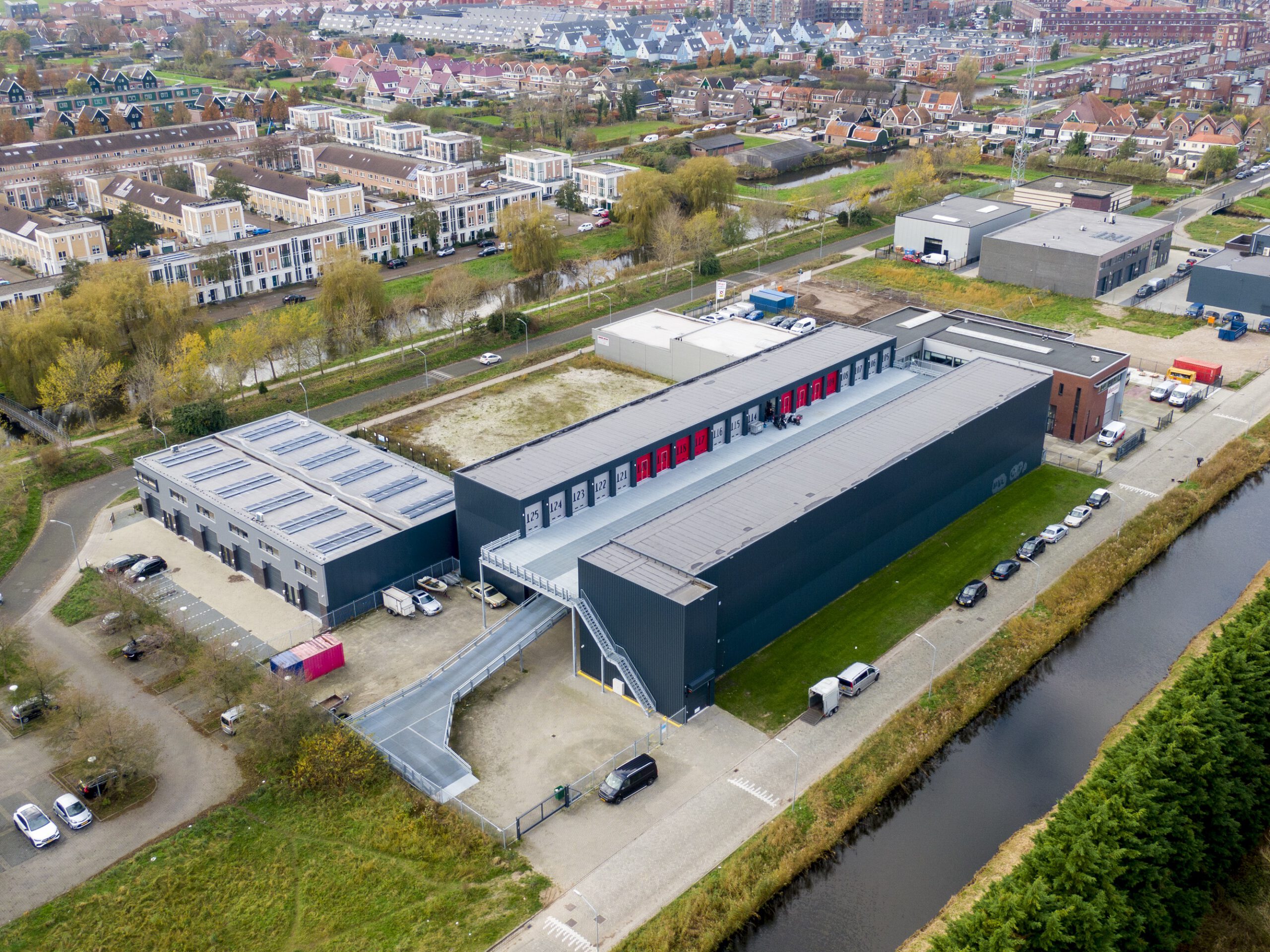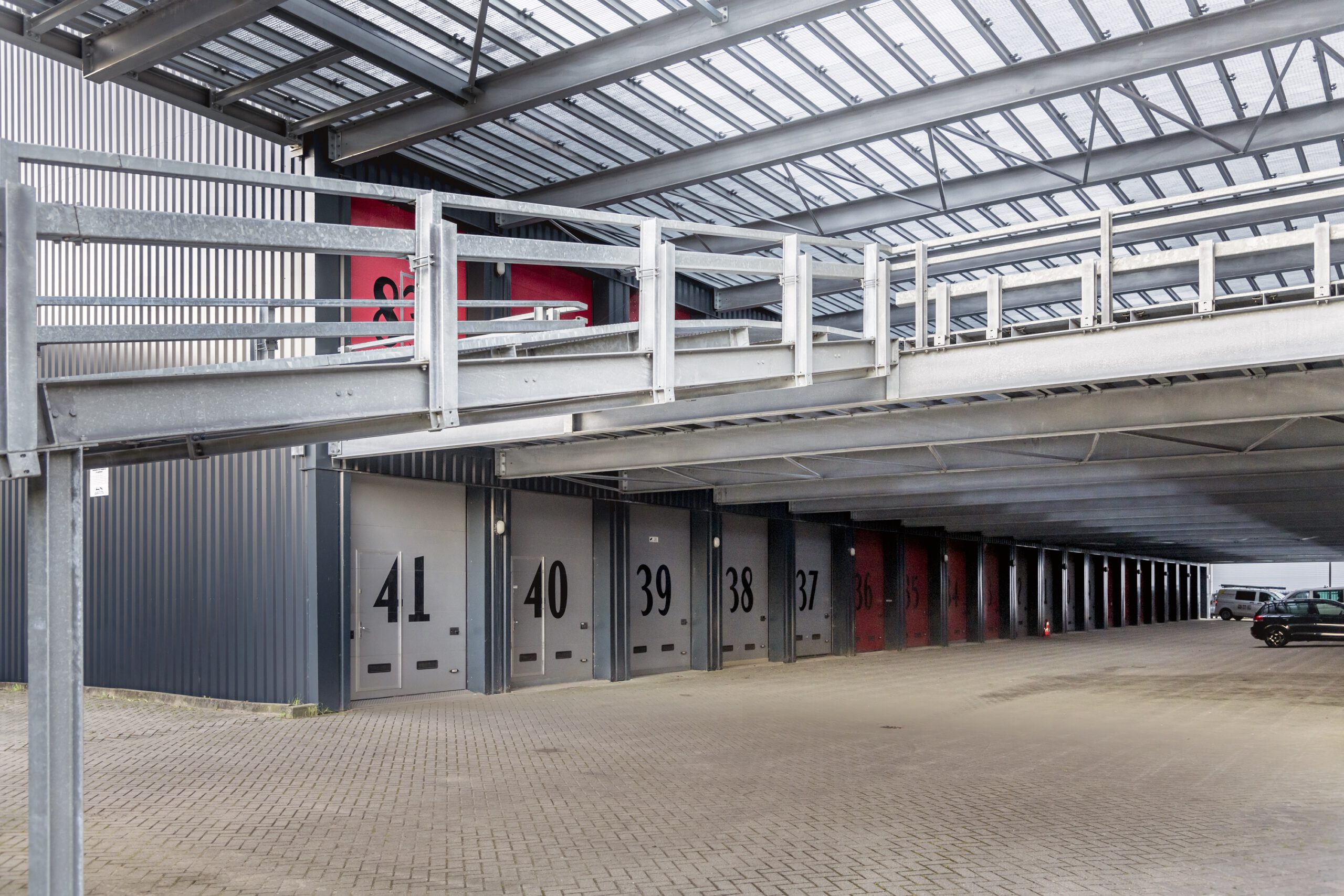 2e verdieping met 42 opslagboxen op de bestaande bouw met een unieke lift naar 2e verdieping voor auto, caravan of camper.