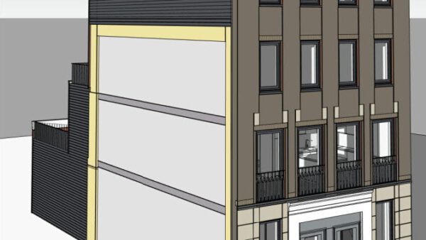 Stadswoning met bedrijfsruimte in Weidevenne, 4 bouwlagen.